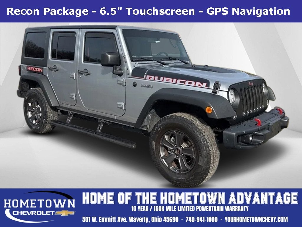 2017 Billet Silver Metallic Clearcoat Jeep Wrangler Unlimited Rubicon Recon 3.6L V6 24V VVT 4WD Touchscreen Controls, **Hometown Advantage including Free Oil Changes for Life**, GPS Navigation, Recon Package.